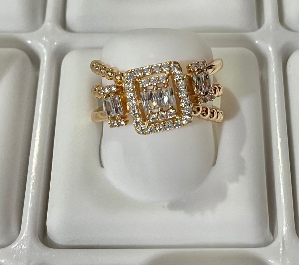 18026 ANILLO CON CUADRO Y PIEDRAS BLANCAS 18K