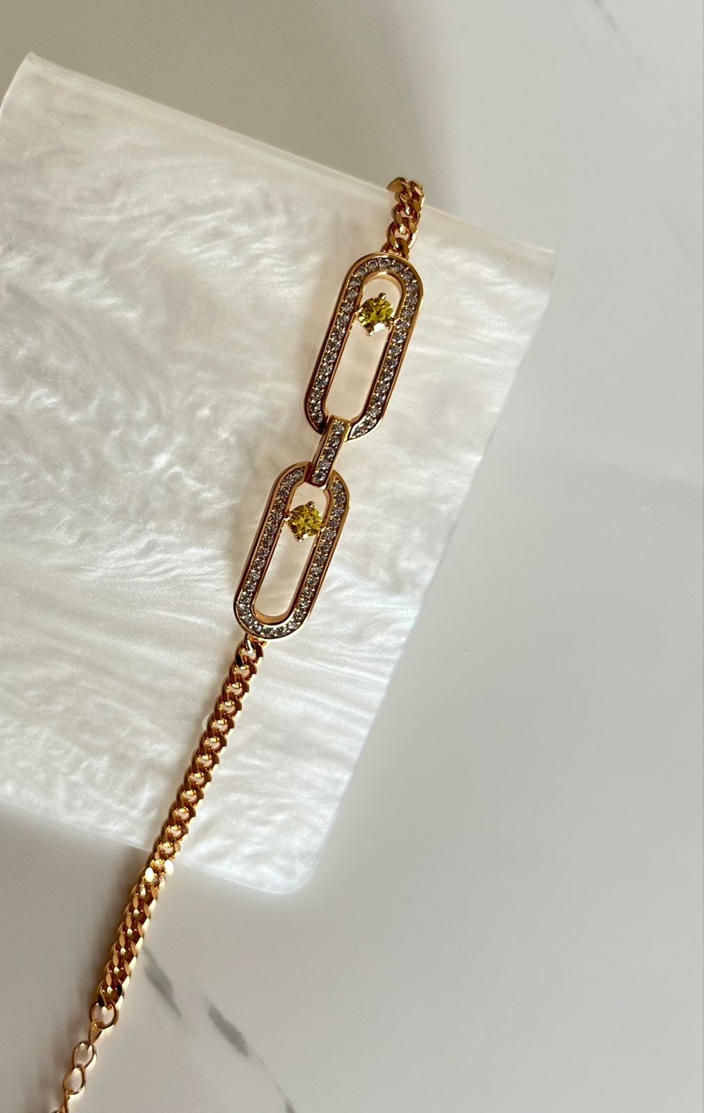 P18033 PULSERA CON DOS PLACAS DE BRILLOS Y CRISTAL AMARILLO 18K