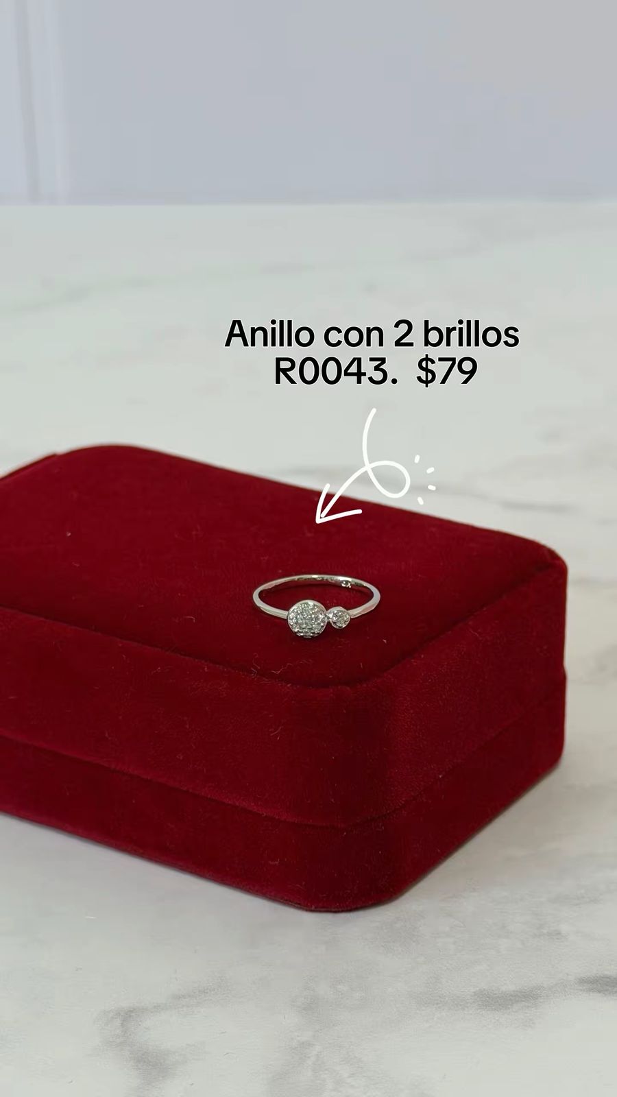 R0043 ANILLO CON 2 BRILLOS RODIO